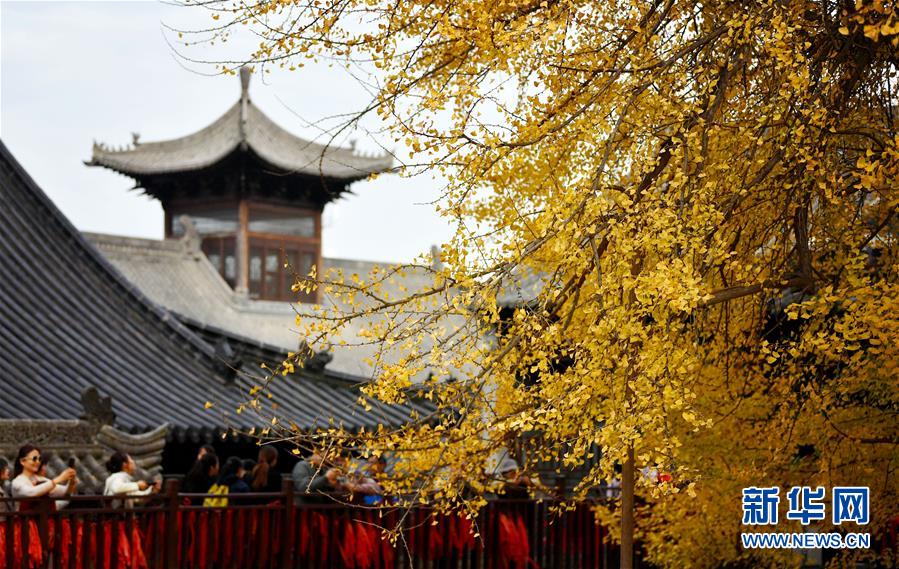 11月11日,游客在羅漢洞村古觀音禪寺觀賞千年銀杏樹(shù)。