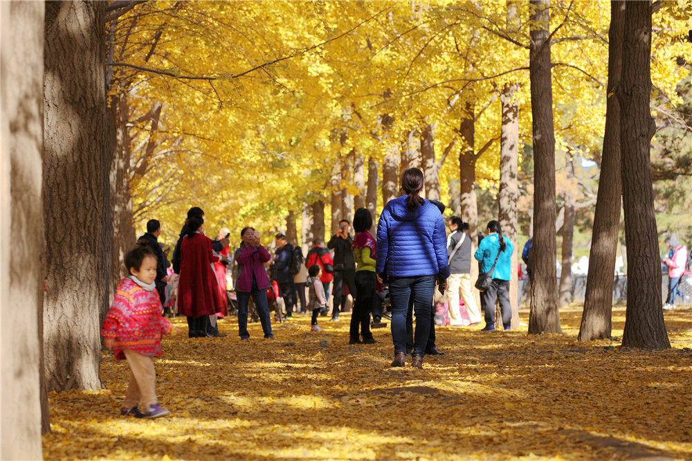 2019年11月11日,北京,西城區(qū)三里河數(shù)百米銀杏大道一片金黃,吸引眾多游人欣賞拍照。