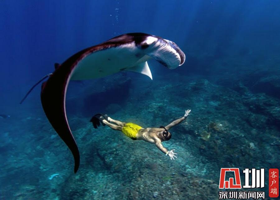 2017年6月30日報(bào)道(具體拍攝時(shí)間不詳),畫面中這位小哥潛入深海,與沉船和魔鬼魚來了一次親密接觸。28歲的Adam Stern來自英國2017年6月30日報(bào)道(具體拍攝時(shí)間不詳),畫面中這位小哥潛入深海,與沉船和魔鬼魚來了一次親密接觸。