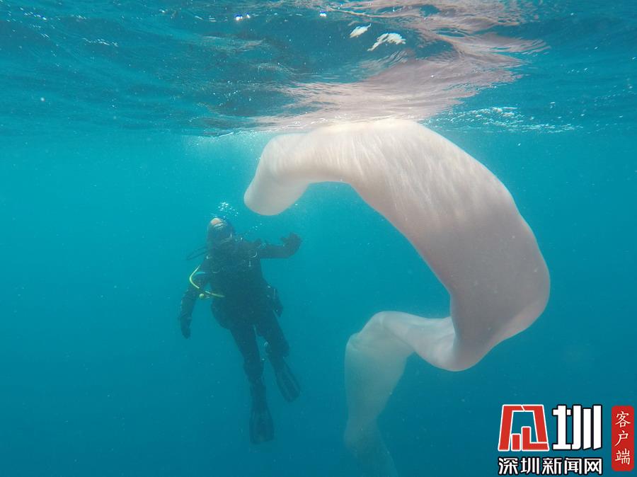 2018年11月13日?qǐng)?bào)道,10月25日,潛水員Andrew Buttle和好友Steve Hathaway來到新西蘭最活躍火山之一的懷特島附近海域潛水,正當(dāng)他們?cè)诤V袧撚沃畷r(shí),突然發(fā)現(xiàn)遠(yuǎn)處出現(xiàn)了一條巨大的白帶,在海水中搖曳生姿,仿若一個(gè)鼓鼓的風(fēng)向袋。帶著好奇心,Andrew和Steve慢慢靠近這個(gè)神秘的東西,仔細(xì)一看,發(fā)現(xiàn)這并非什么白色綢帶,也不是風(fēng)向袋,而是一條碩大的蛀船蟲,這個(gè)神奇的海洋軟體生物長達(dá)整整8米多,上面附著著成千上萬個(gè)有機(jī)體,模樣十分駭人。