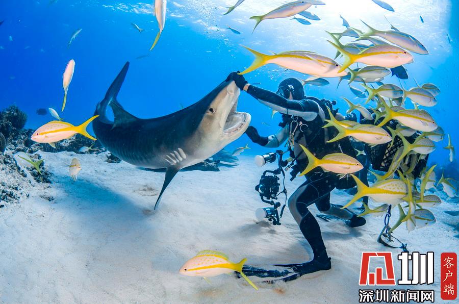 2019年1月28日?qǐng)?bào)道(具體拍攝時(shí)間不詳),虎鯊向來(lái)是出了名的兇猛,但這組照片中的虎鯊們似乎變成了粘人的萌寵一般。鏡頭下,它們開(kāi)心又友好地同潛水員們互動(dòng)著,享受潛水員輕撫肚皮,緩緩地在潛水員周圍游動(dòng)。攝影師在巴哈馬群島老虎灘水域拍下了這組照片。