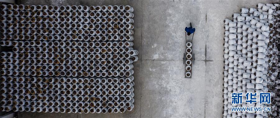 11月7日,古越龍山紹興酒股份有限公司釀酒一廠的工人用手推車(chē)運(yùn)送酒壇,開(kāi)啟黃酒“冬釀”序幕(無(wú)人機(jī)拍攝)。新華社記者徐昱攝