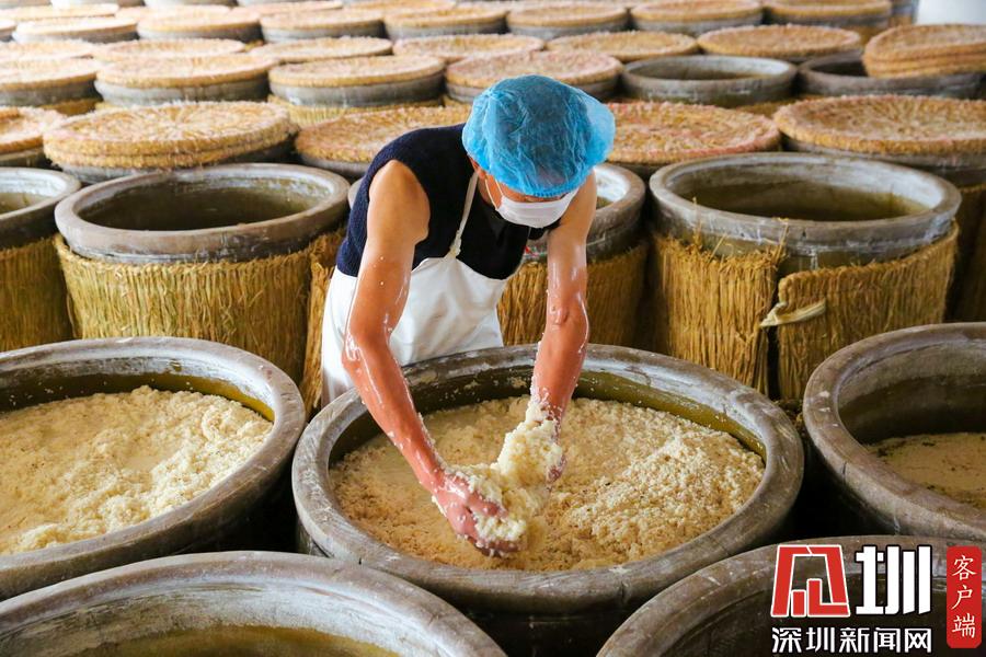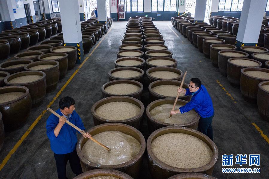 2019年11月13日,江蘇省如皋市白蒲鎮(zhèn)一釀酒廠,工人在進(jìn)行二次喂飯工藝操作。