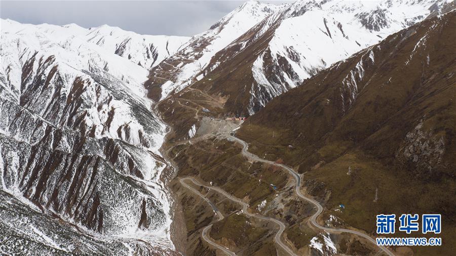 這是在川藏公路四川折多山埡口拍攝的曲折回旋的川藏公路(6月28日攝)。新華社記者江宏景攝