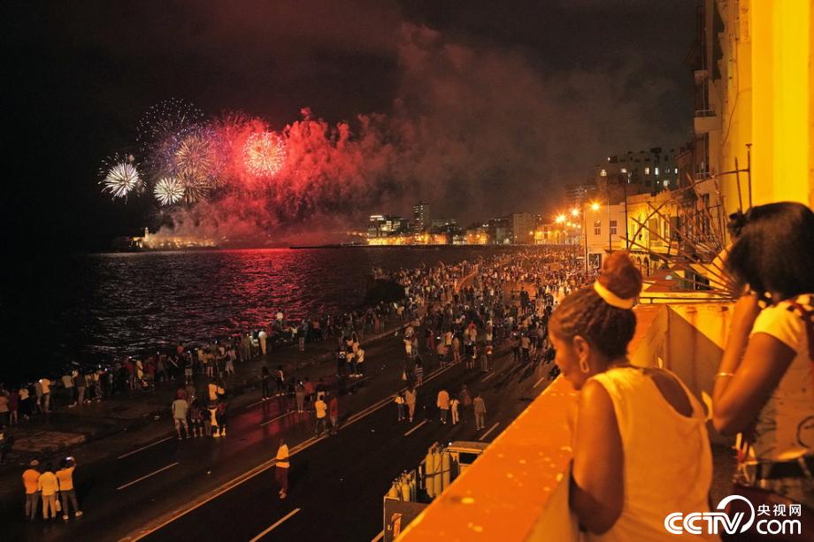 當(dāng)?shù)貢r(shí)間2019年11月15日,古巴哈瓦那,當(dāng)?shù)厝挤艧熁☉c祝哈瓦那建城500周年。2019年11月16日是古巴首都哈瓦那建城500周年紀(jì)念日。視覺(jué)中國(guó)