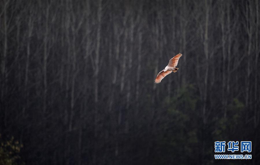 11月19日,朱鹮在漢江支流的牧馬河上空翱翔。 新華社記者陶明攝