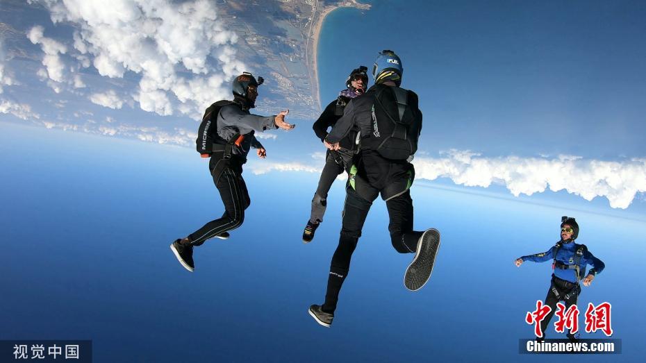 11月20日訊,以色列一群跳傘者在從一萬三千英尺(約3962米)的高空進(jìn)行跳傘,墜落時盡情嬉戲、舞動和翻跟斗。圖片來源:視覺中國