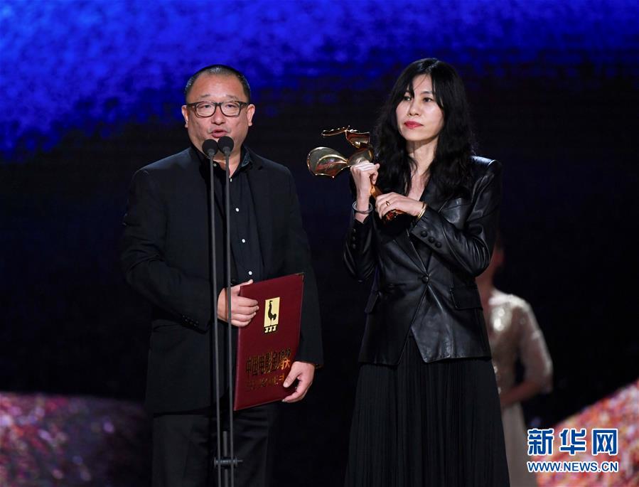 11月23日,電影《地久天長》獲得最佳編劇獎,導(dǎo)演兼編劇王小帥(左)、編劇阿美在頒獎儀式上。 當(dāng)日,第32屆中國電影金雞獎頒獎典禮在福建廈門舉行。 新華社記者姜克紅攝