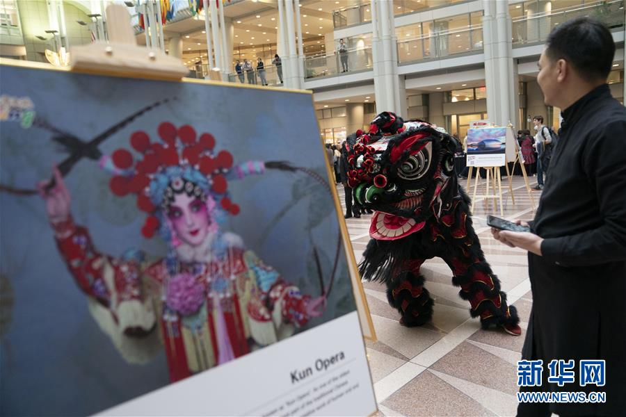 11月22日,在美國(guó)華盛頓,演員在“北京日”文化廟會(huì)活動(dòng)上表演舞獅。作為中國(guó)北京和美國(guó)首都華盛頓締結(jié)友好城市35周年慶祝活動(dòng)的一部分,“北京日”文化廟會(huì)22日在華盛頓羅納德·里根大廈和國(guó)際貿(mào)易中心舉行。新華社記者劉杰攝