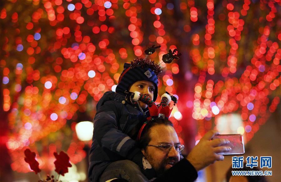 11月24日,在法國巴黎,一名女子在香榭麗舍大街點燈儀式上拍照。當日,法國巴黎香榭麗舍大街點亮彩燈迎圣誕。從即日起至1月8日,整條香榭麗舍大街都將被喜慶的節(jié)日燈飾點亮。新華社記者高靜攝