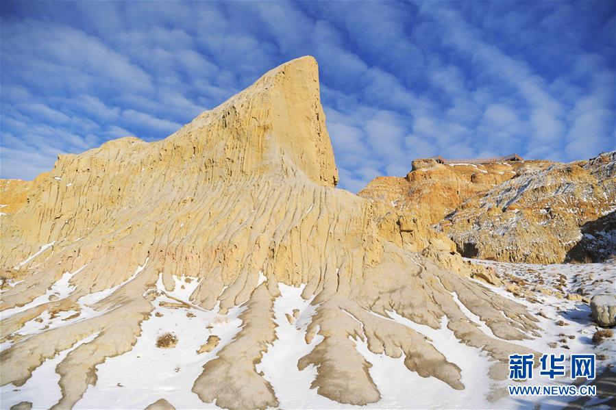 11月26日拍攝的新疆福??h烏倫古湖海上魔鬼城景區(qū)美景。福海縣烏倫古湖海上魔鬼城景區(qū)位于新疆阿勒泰地區(qū)福??h吉力湖東岸,有著獨特的雅丹地貌和水域景觀,是當(dāng)?shù)刂穆糜蝿俚?。新華社記者沙達(dá)提攝