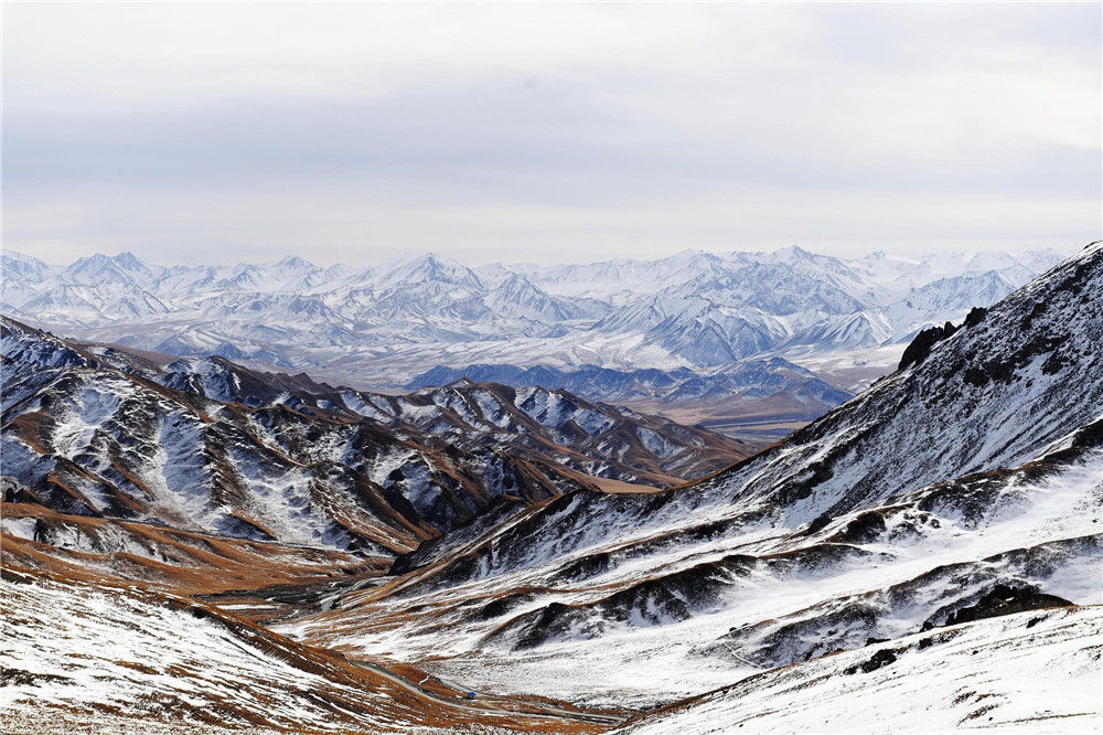 2019年11月23日,甘肅、青海交界的祁連山區(qū)白雪皚皚、銀裝素裹,如同“雪國(guó)世界”。視覺(jué)中國(guó)