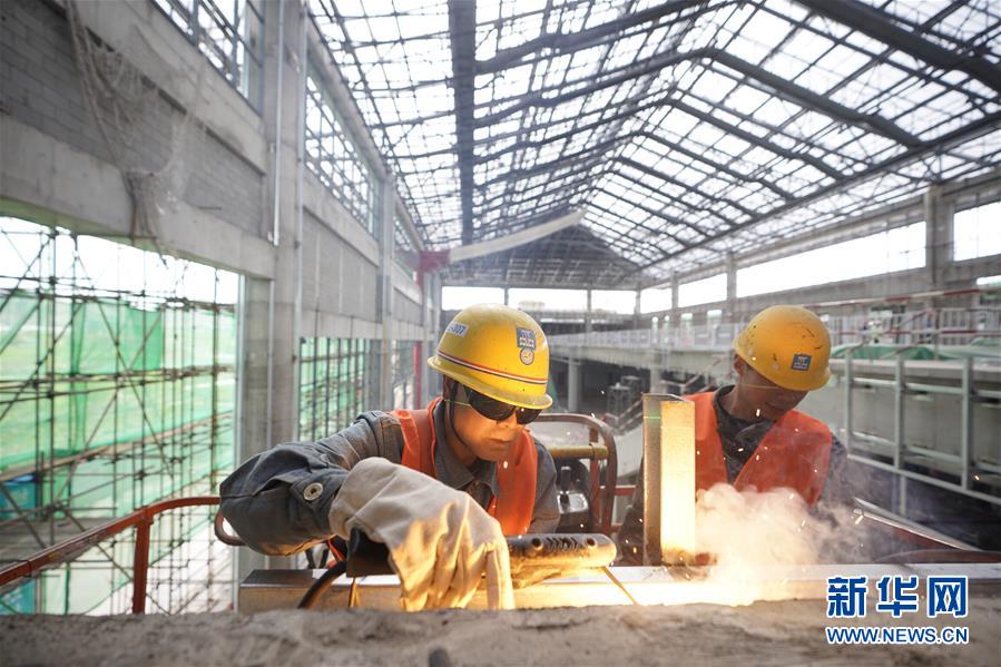 5月30日,工人在宣化北站施工。新華社記者邢廣利攝
