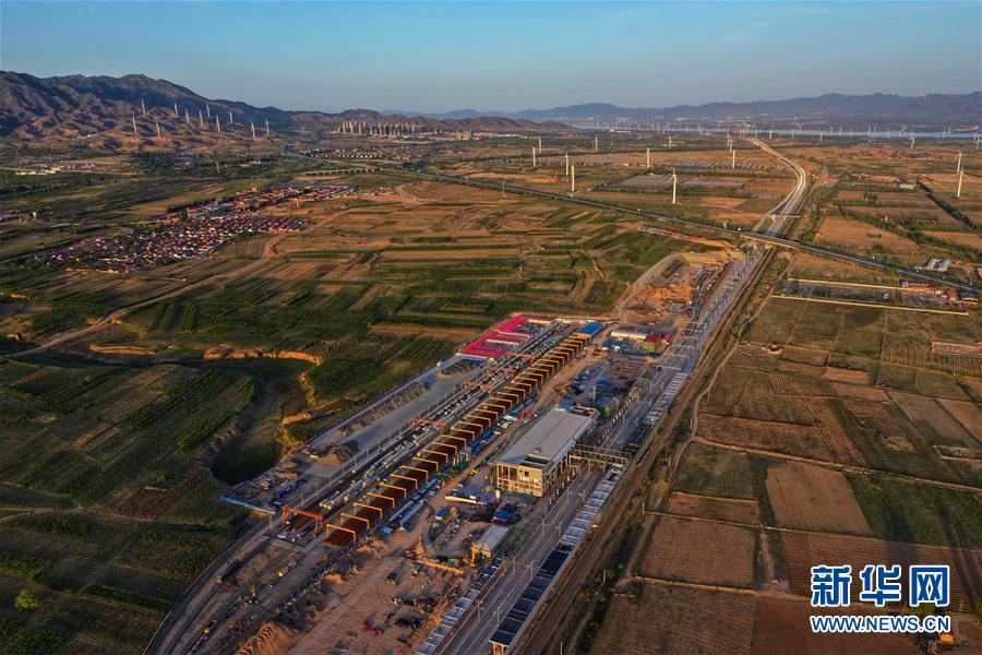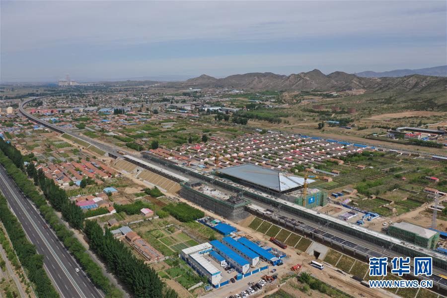 5月28日無人機(jī)拍攝的建設(shè)中的京張高鐵懷來站。京張高鐵懷來站位于河北省懷來縣沙城主城區(qū)東側(cè)偏南3.5公里處,目前該站主體工程已經(jīng)完工。新華社記者邢廣利攝