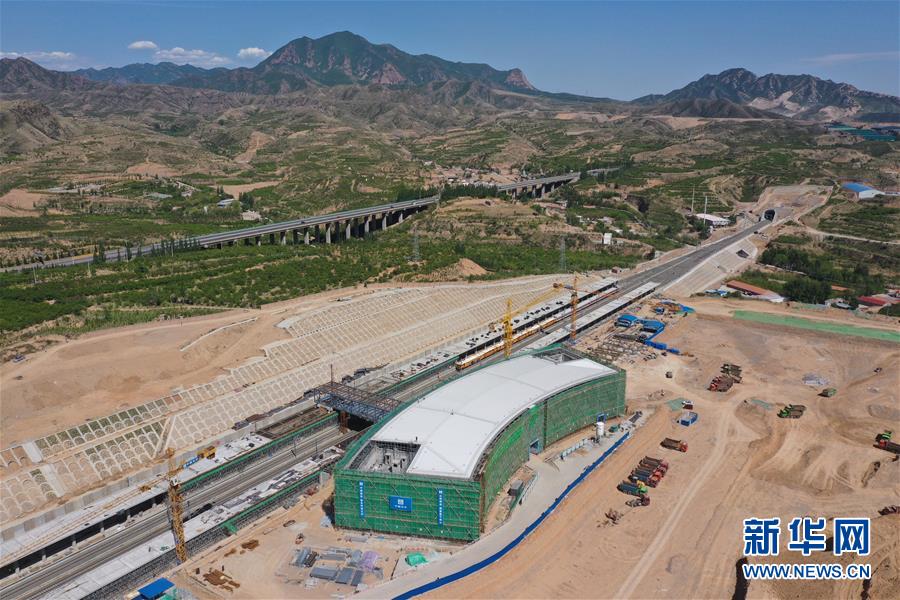 建設中的京張高鐵下花園北站(5月29日無人機拍攝)。京張高鐵下花園北站是連接京張高鐵和崇禮鐵路的樞紐站,位于下花園城區(qū)北側偏東,站場規(guī)模設2站臺5線。目前,下花園北站主體建設已完工,正在進行內(nèi)外部裝修。新華社記者邢廣利攝