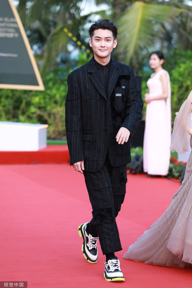 熊梓淇穿西服踩球鞋玩混搭。