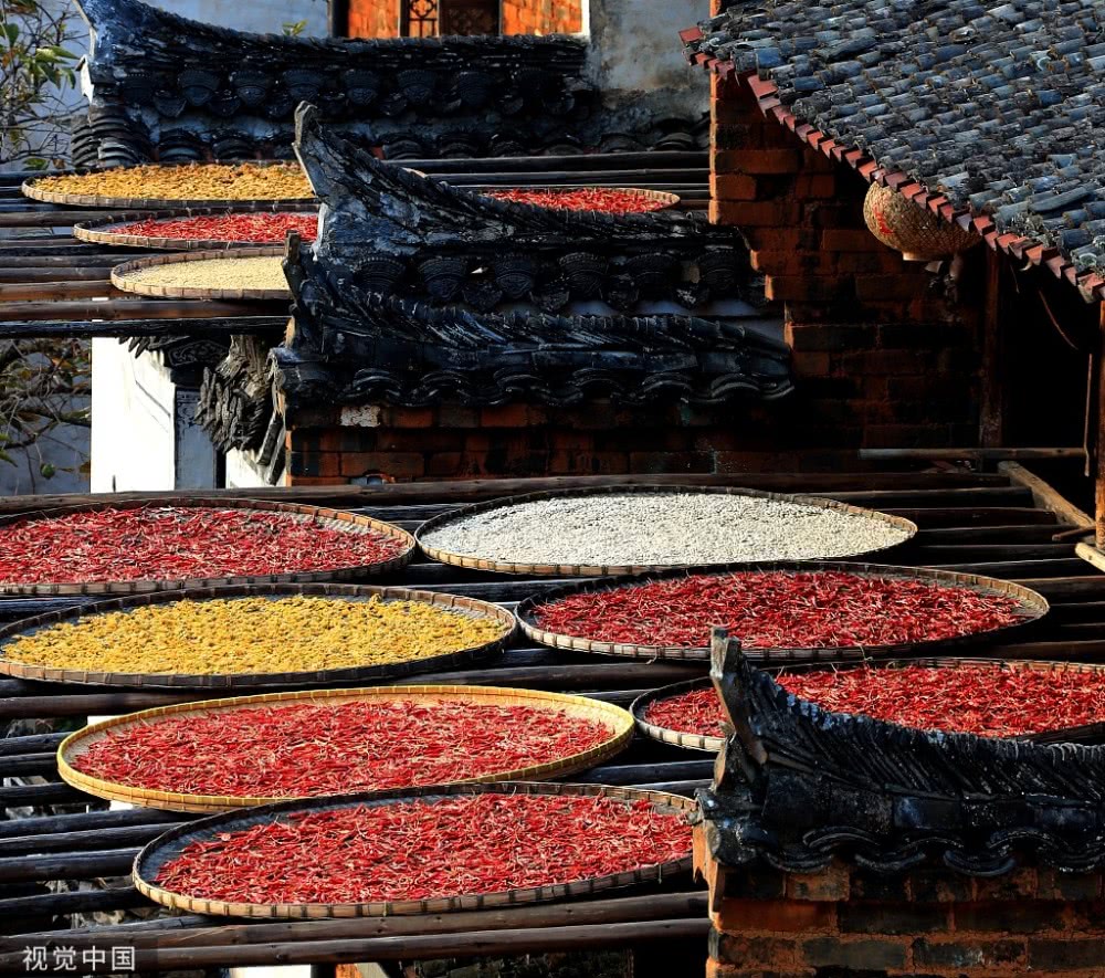 篁嶺色彩斑斕的"曬秋"。