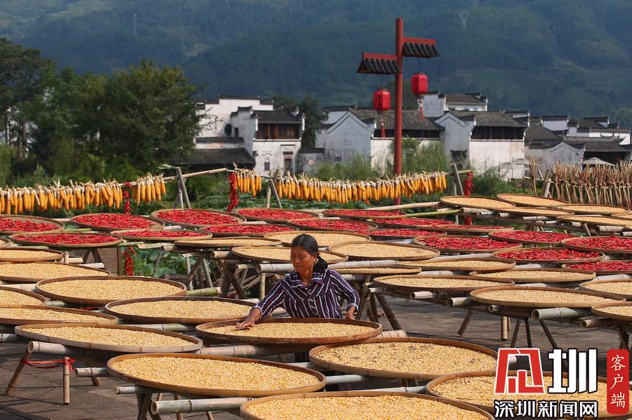 2019年9月9日,安徽黃山,呈坎古村村民在曬場上晾曬農(nóng)作物。