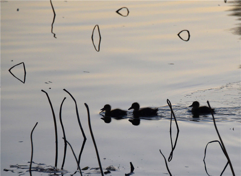 北京:玉淵潭野鴨寶寶“溜冰“戲水萌萌噠