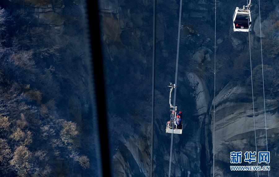 華山太華索道檢修人員在進行承載索調(diào)試(12月6日攝)。新華社記者陶明攝
