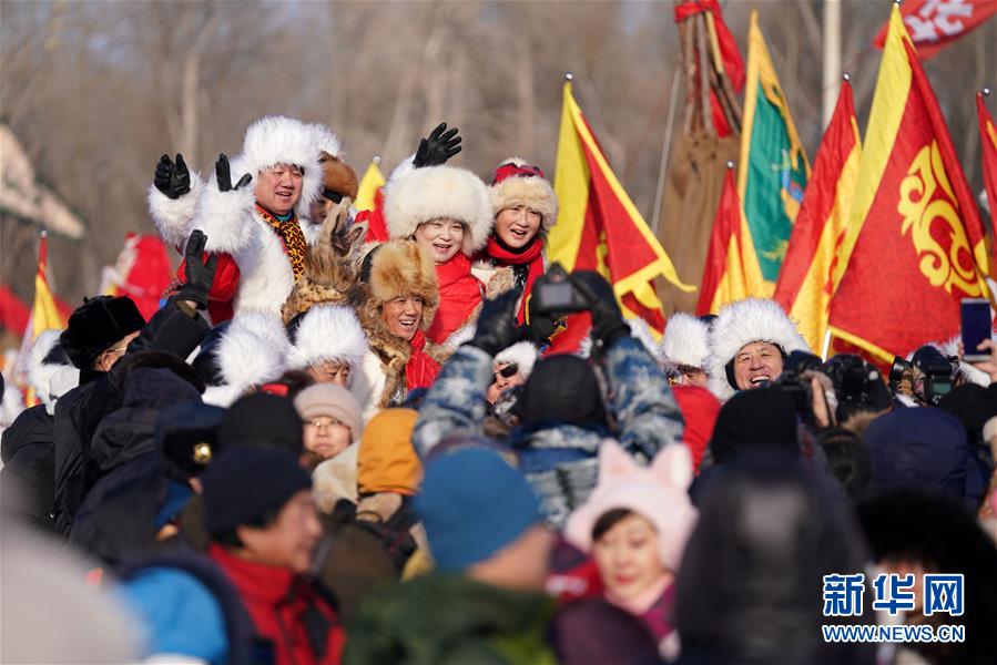 12月7日,人們?cè)诓杀?jié)現(xiàn)場(chǎng)合影留念。當(dāng)日,哈爾濱采冰節(jié)在冰封雪覆的松花江哈爾濱段江面上開幕,精彩的采冰儀式和表演吸引了眾多冰城市民和游客前來欣賞、互動(dòng)。新華社記者王建威攝