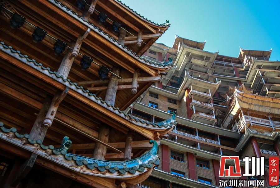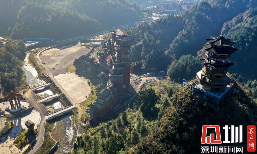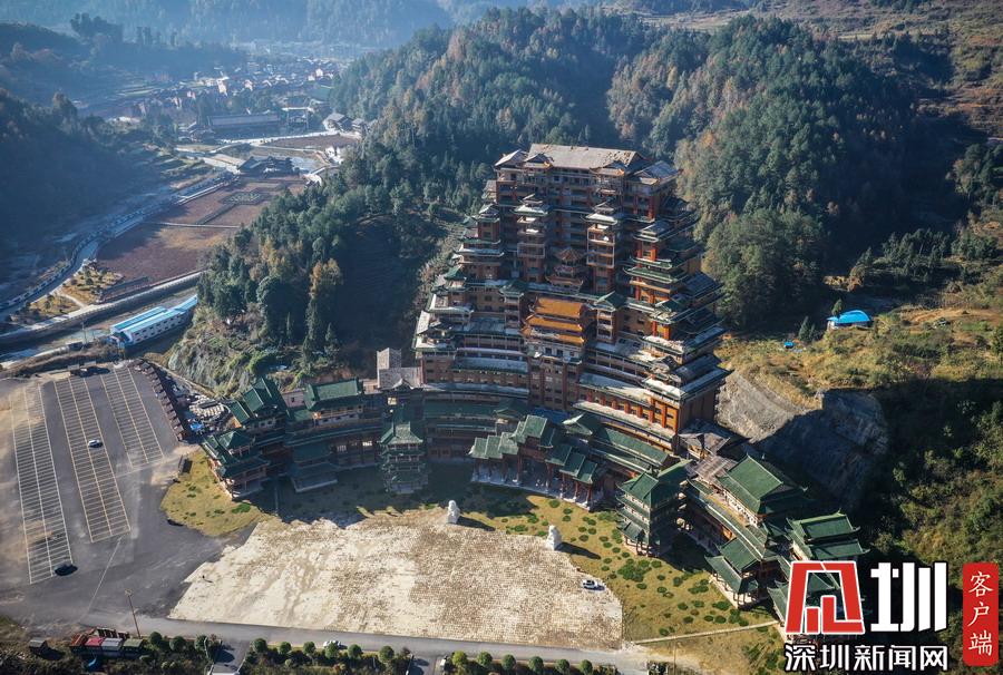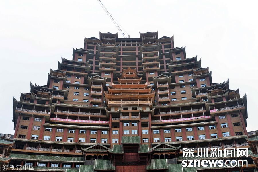 2019年12月8日,貴州省黔南布衣族自治州。位于獨(dú)山縣影山鎮(zhèn)凈心谷的水司府堂占地面積5900平方米,總建筑面積60000平方米,共24層,高99米,進(jìn)深240米,是世界上最高最大最壯觀的水族建筑,被稱為“天下第一水司樓”。