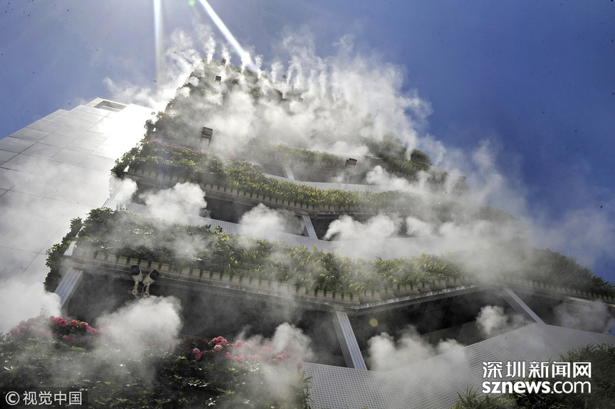 “仙氣飄飄”、“西安天氣有多熱,房子都冒煙了”,這是一段抖音小視頻里網(wǎng)友的評(píng)論留言。視頻中一棟10層高的樓外側(cè)樓梯處掛滿了綠植,同時(shí)綠植上方還有噴霧。藍(lán)藍(lán)的天空當(dāng)做背景,引來(lái)不少人上前拍照,配著背景音樂(lè)的確讓人感覺清涼無(wú)比。 |