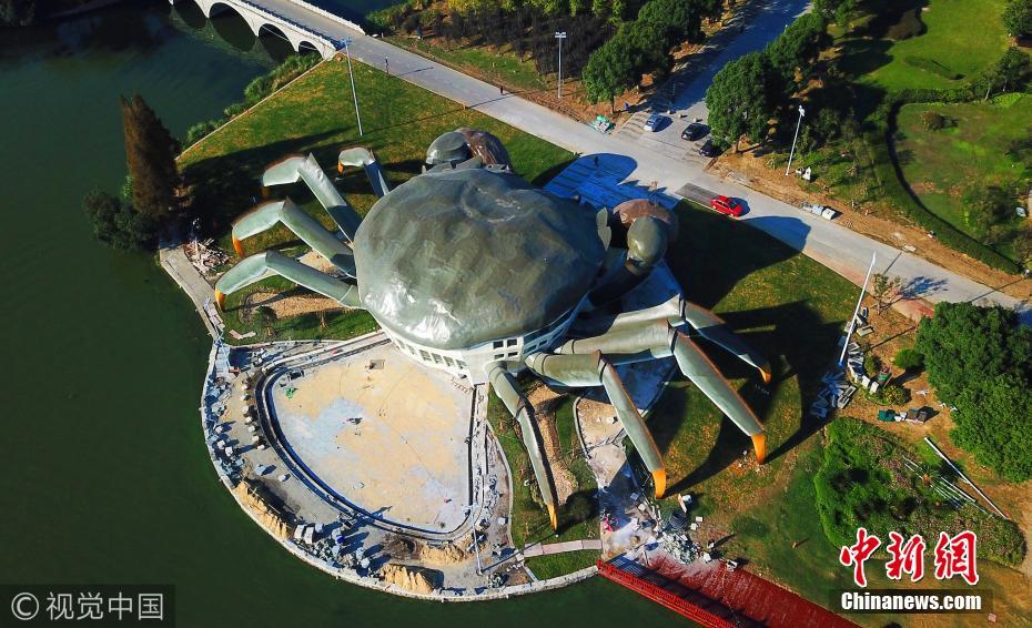 據(jù)了解,這是建造中的大閘蟹生態(tài)館,預(yù)計(jì)未來(lái)將在大閘蟹的白肚內(nèi)容納三層空間,集休閑、娛樂(lè),以及有關(guān)大閘蟹體驗(yàn)于一體的設(shè)施。圖片來(lái)源:視覺中國(guó) 目前建筑主體已經(jīng)完工,地面景觀正在進(jìn)行,預(yù)計(jì)明年下半年建成開放。圖片來(lái)源:視覺中國(guó) |