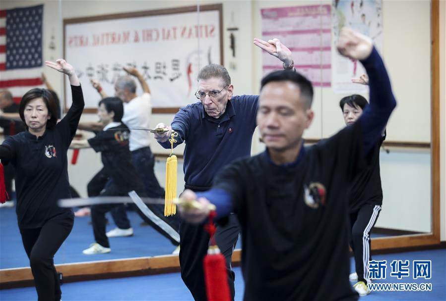 陳思坦在位于美國紐約長島的思坦太極武術(shù)中心帶學(xué)員練習(xí)太極劍(11月20日攝)。11月的紐約已進(jìn)入初冬,位于美國紐約長島的思坦太極武術(shù)中心依然一片紅火景象,學(xué)員們從5歲的孩童到80多歲的老人,操練著太極拳、太極劍、長拳等武術(shù)招式。這里的主人陳思坦、林旭夫婦,也從早忙到晚,精心指導(dǎo)每一位學(xué)員的一招一式。6歲習(xí)武,22歲成為中國全國冠軍,26歲獲得首個世界冠軍……直到30歲退役,陳思坦在運(yùn)動員生涯中曾獲得過32次國內(nèi)外各類武術(shù)大賽冠軍。36歲那年,懷著以太極拳和中國武術(shù)為媒介向世界推廣中國文化的夢想,陳思坦到美國紐約尋找新的舞臺。經(jīng)過十多年的艱苦打拼,陳思坦夫婦目前在紐約長島、法拉盛和曼哈頓都開設(shè)了長期的課程,思坦太極注冊在編的各個年齡段的學(xué)員近千人,有些“高徒”現(xiàn)在自己也開班授課,將太極推向更多地方。陳思坦夫婦現(xiàn)在思考更多的是如何將太極和武術(shù)推廣給更多的美國人,并讓他們理解其中蘊(yùn)含的平衡、和諧的中國文化理念。他們創(chuàng)辦了紐約太極健身氣功活動日,在各類學(xué)校和社區(qū)開設(shè)太極或者武術(shù)課程,并利用美國的亞太裔文化月和多元文化節(jié)舉行武術(shù)和太極表演和體驗課程,讓更多美國人親眼看到、親身體會中國武術(shù)的魅力。從2011年起,他們還參與創(chuàng)辦了紐約太極大賽,如今已舉行九屆,吸引了美國、加拿大和中國國內(nèi)的隊伍參賽,影響力逐漸擴(kuò)大。新華社記者王迎攝
