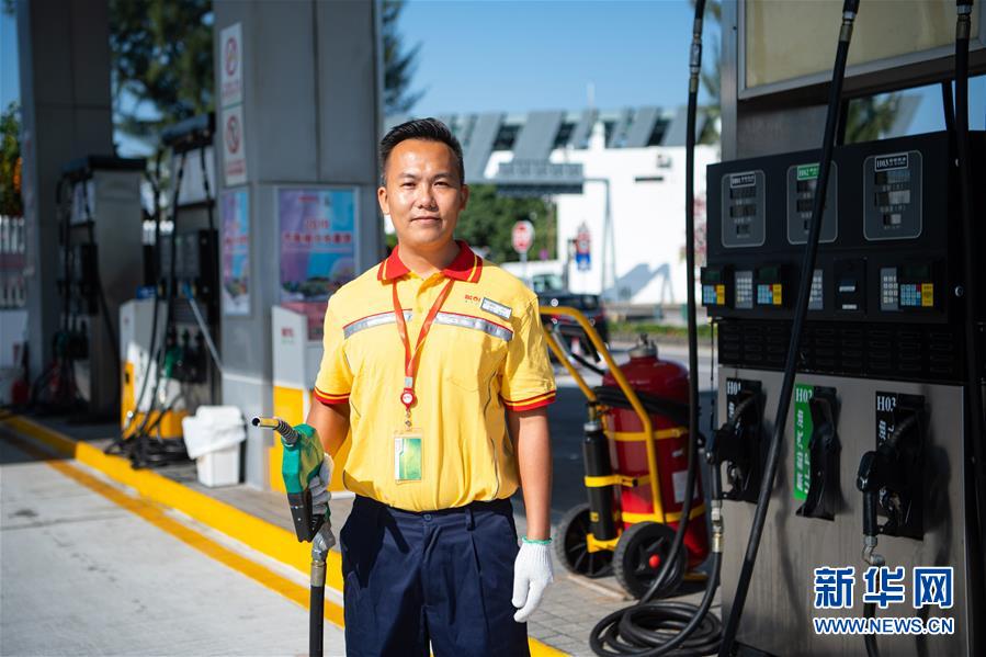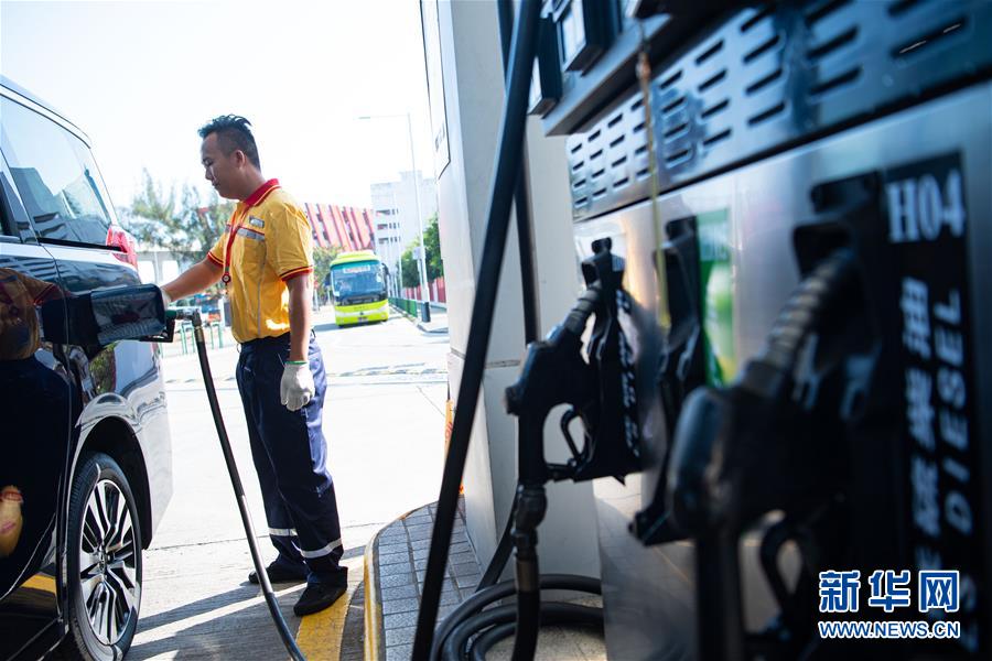 11月25日,澳門南光石油化工有限公司加油員陳健忠在給汽車加油,他已經(jīng)工作了3年。 新華社記者 張金加 攝