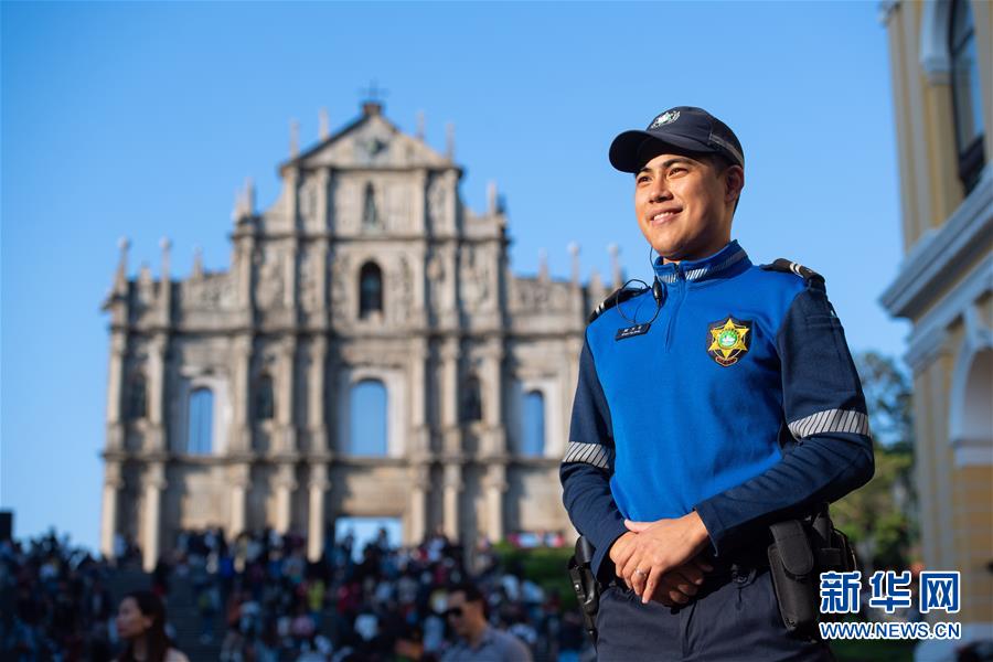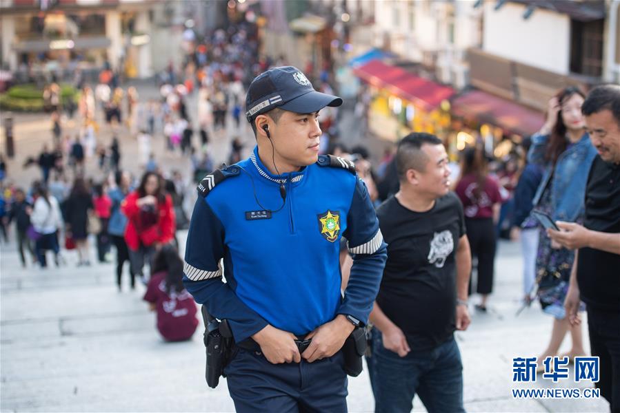 11月28日,澳門治安警察局旅游警察關(guān)天恒在大三巴牌坊附近巡邏,他已經(jīng)工作了2年,主要負(fù)責(zé)維持社會(huì)治安及解答游客問題。 新華社記者 張金加 攝