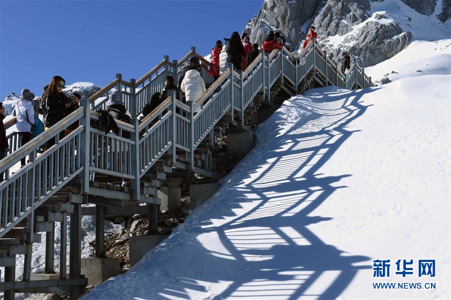 12月10日,人們在玉龍雪山游覽觀光。新華社記者楊宗友攝