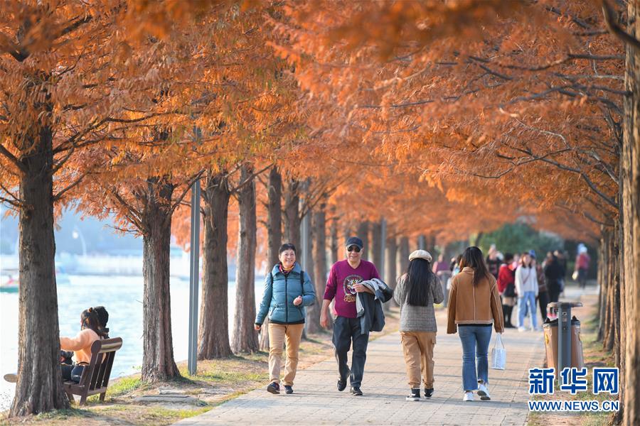 12月10日,游客在湖南烈士公園年嘉湖的游道上行走。新華社記者陳澤國(guó)攝