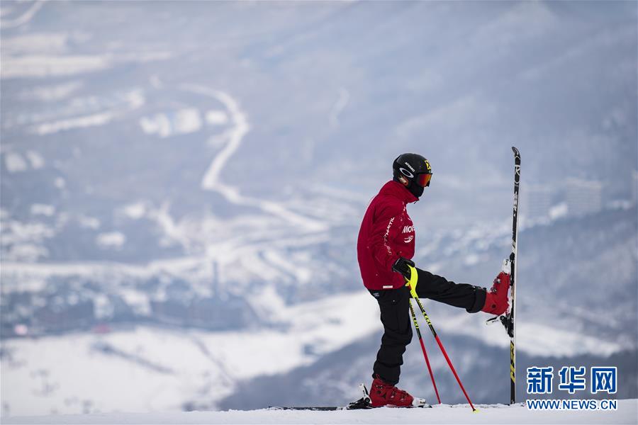 12月13日,滑雪愛好者在吉林市萬科松花湖度假區(qū)做滑雪前的熱身。新華社記者 張豪夫 攝