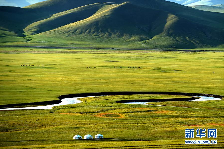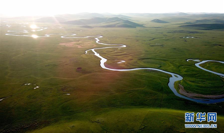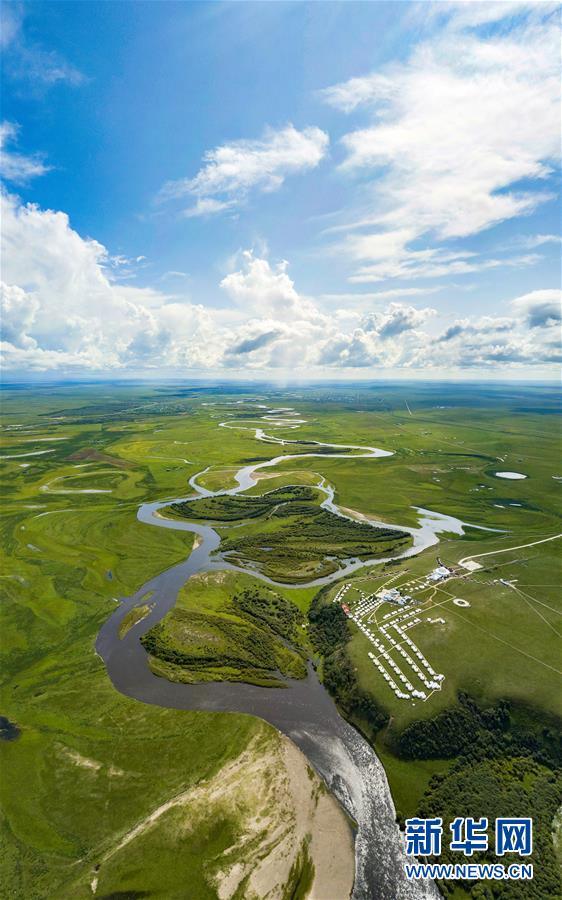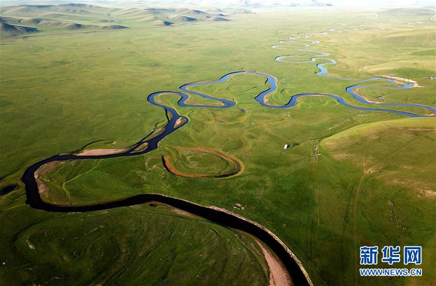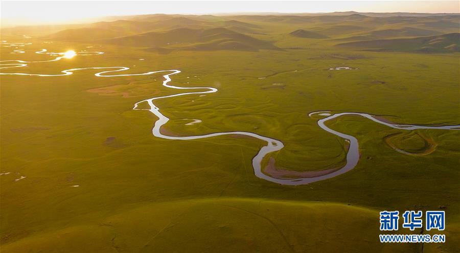 8月26日無人機拍攝的伊敏河(全景照片)。伊敏河流經(jīng)呼倫貝爾草原。新華社記者沈伯韓攝