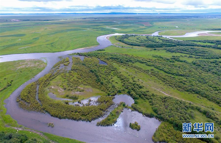 8月29日無人機拍攝的內蒙古呼倫貝爾市額爾古納濕地景區(qū)。新華社記者劉磊攝