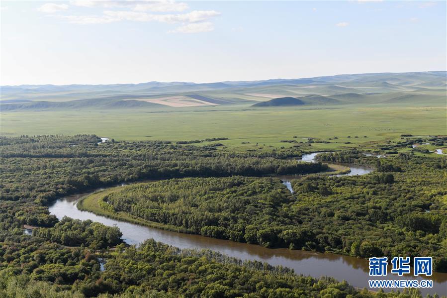 8月29日無人機拍攝的內蒙古呼倫貝爾市陳巴爾虎旗境內的莫日格勒河局部。新華社記者彭源攝