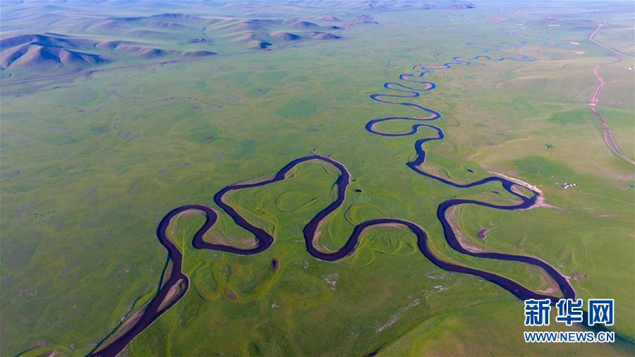 8月29日無人機(jī)拍攝的內(nèi)蒙古呼倫貝爾市陳巴爾虎旗境內(nèi)的莫日格勒河局部。新華社記者彭源攝