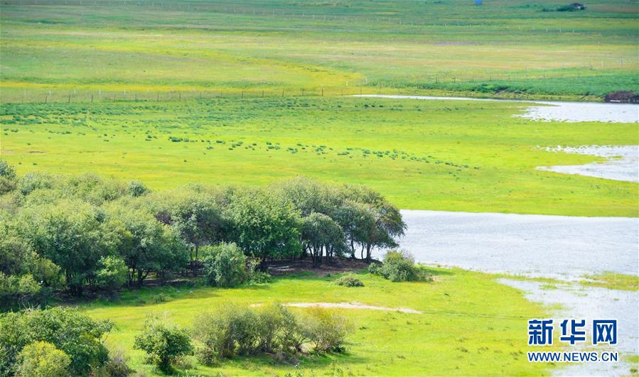 8月26日無人機(jī)拍攝的伊敏河。伊敏河流經(jīng)呼倫貝爾草原。新華社記者彭源攝