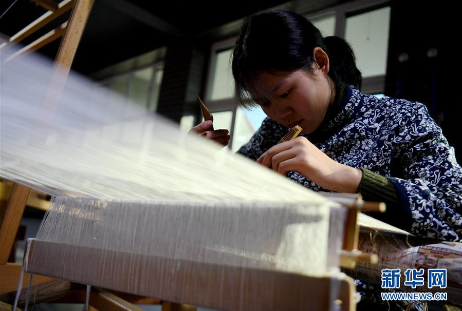 12月14日,在河北定州緙絲傳習基地,工作人員在制作緙絲。 新華社記者 王曉 攝