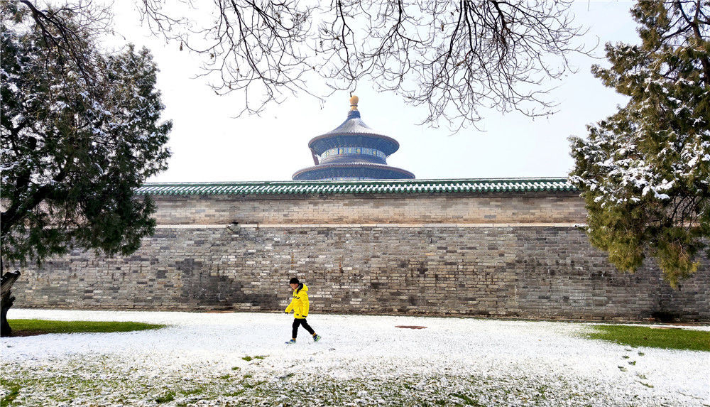 2019年11月30日,北京,天壇公園里觀雪賞景的市民絡(luò)繹不絕。喬?。垐D像/視覺中國