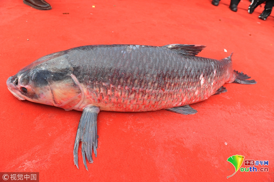 1月6日,安徽省阜陽市潁上縣八里河漁場(chǎng)正式開始進(jìn)行冬季大捕魚,捕獲的一條重達(dá)78斤的“頭魚”拍出88萬元,現(xiàn)場(chǎng)吸引眾多客商和廣大群眾觀看。據(jù)悉,此次所得拍賣款全部用于當(dāng)?shù)孛撠毠?jiān)。圖片來源:視覺中國