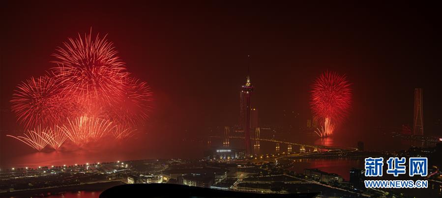 12月22日,煙花在澳門(mén)上空綻放。當(dāng)晚,澳門(mén)與珠海首次聯(lián)合舉行煙花匯演,慶祝澳門(mén)回歸祖國(guó)20周年。新華社記者張金加攝