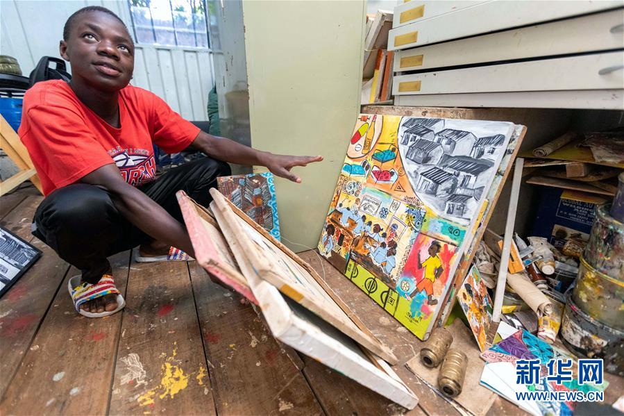 12月20日,在肯尼亞內(nèi)羅畢庫奧納藝術(shù)中心,一名藝術(shù)家在工作室內(nèi)創(chuàng)作作品。 新華社記者 王騰 攝
