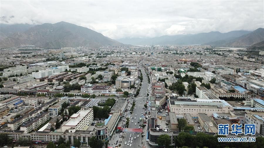 鳥瞰拉薩古城(8月10日無人機拍攝)。新華社記者晉美多吉攝