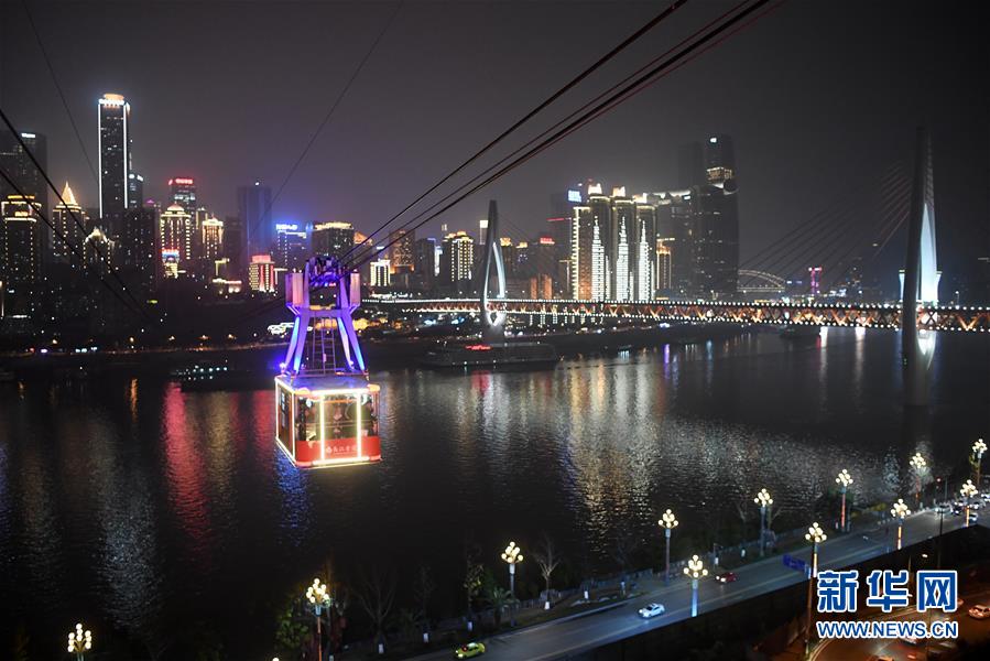 12月23日,“長(zhǎng)江索道”在重慶夜空中運(yùn)行。