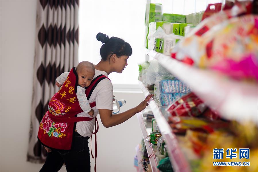 在大興地鎮(zhèn)維拉壩“珠海小區(qū)”的超市,村民三春梅在挑選商品(6月24日攝)。新華社記者胡超攝