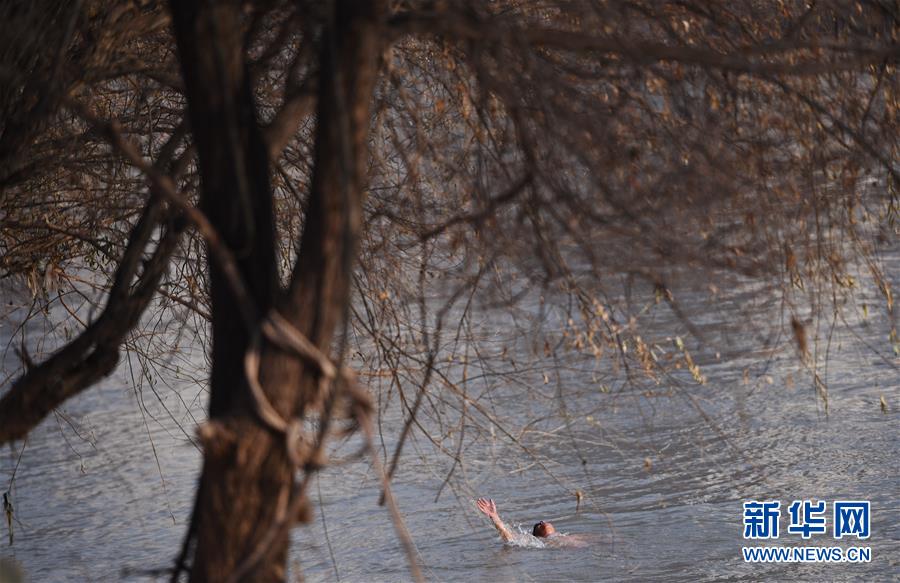 12月18日,冬泳愛好者趙西普在黃河冬泳。新華社記者陳斌攝