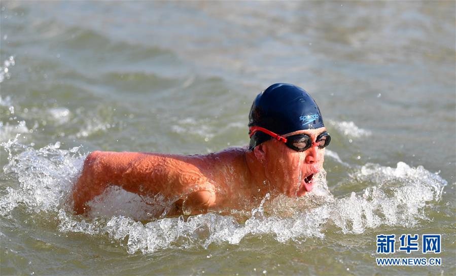 12月18日,冬泳愛(ài)好者趙西普在黃河冬泳。新華社記者陳斌攝