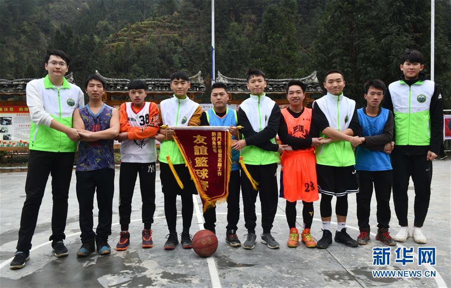 12月26日,澳門青年藝能志愿工作會(huì)的義教老師們和烏英苗寨的青年們?cè)诨@球比賽前合影留念。 新華社記者 王諾 攝